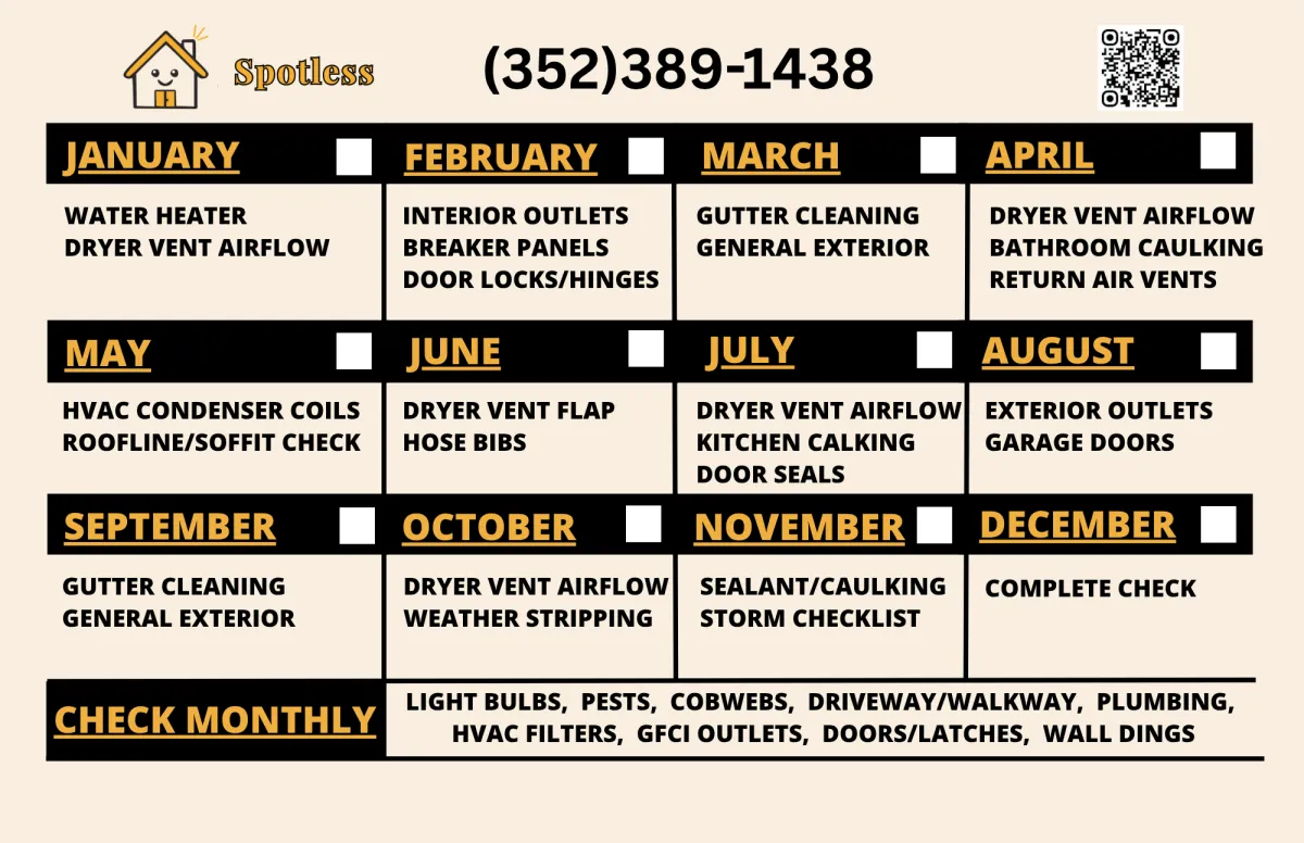 from smoke detectors and outlets in January to gutter cleaning in September.
